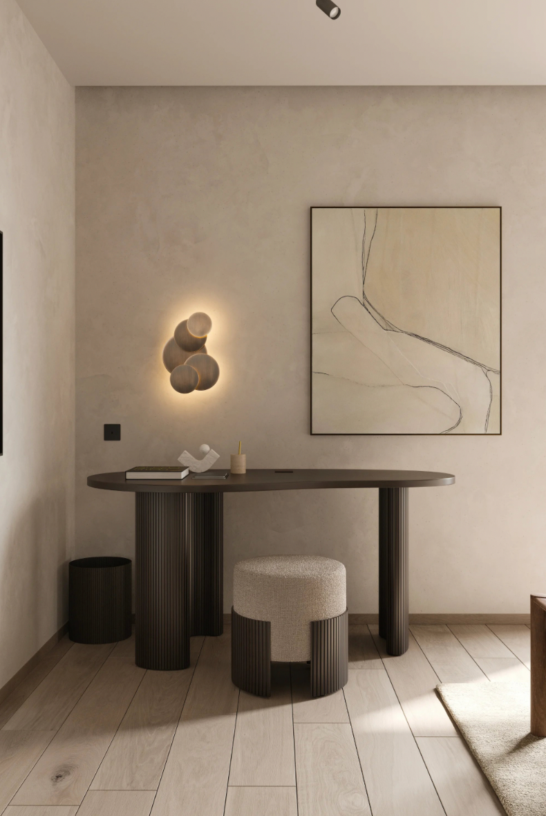 Wrapped in tactile upholstery and defined by clean lines, Astra’s bold silhouette is softened by subtle detailing—a wooden base that grounds the piece with natural warmth and balance.