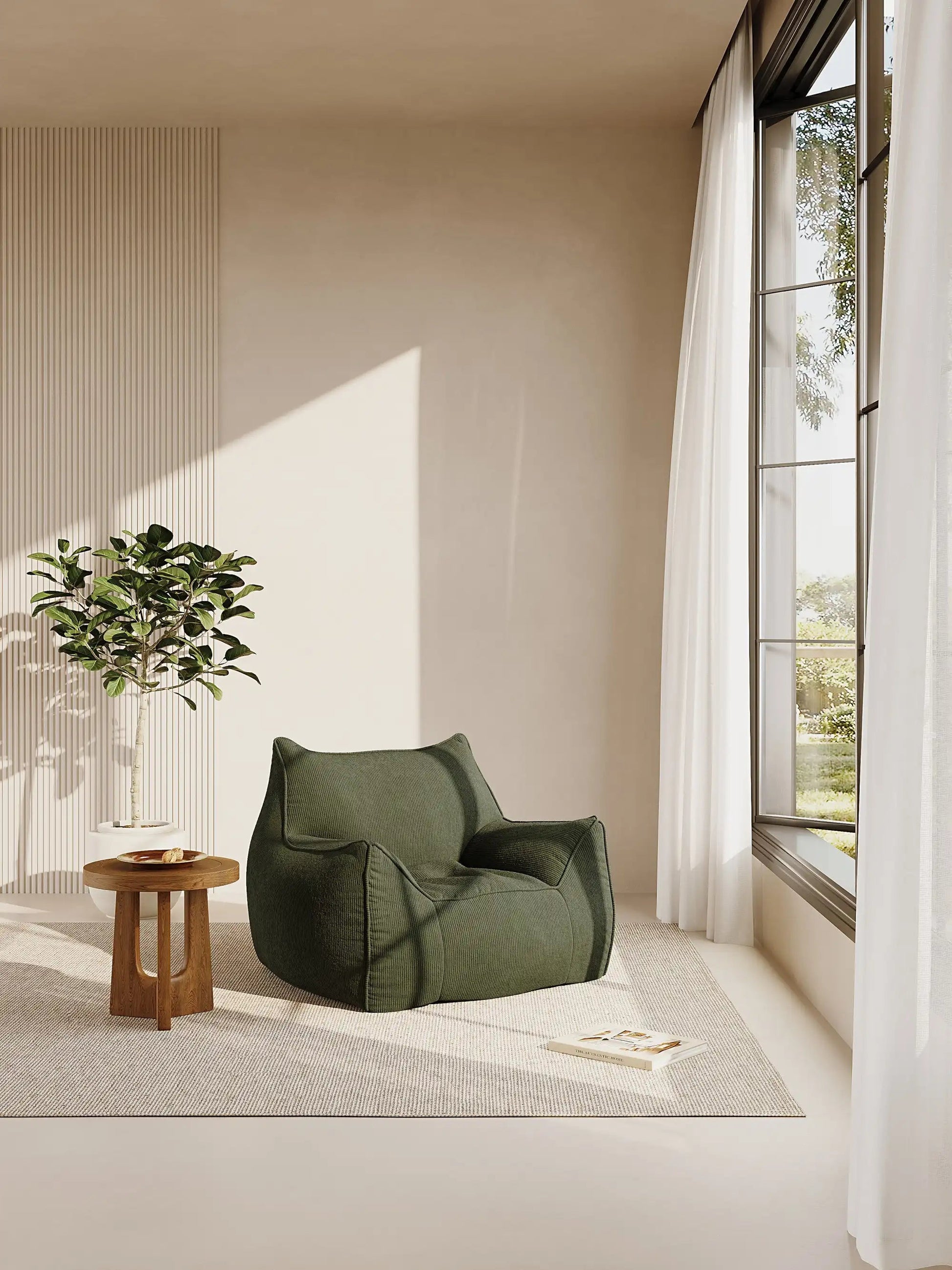 Each contour is deliberate: the sloped back cradles you in repose, while the structured seams preserve its sculpted integrity. With its balanced proportions and quiet presence, Elmir is more than a bean bag — it’s an embodiment of relaxed luxury, crafted for spaces that value simplicity, texture, and calm.