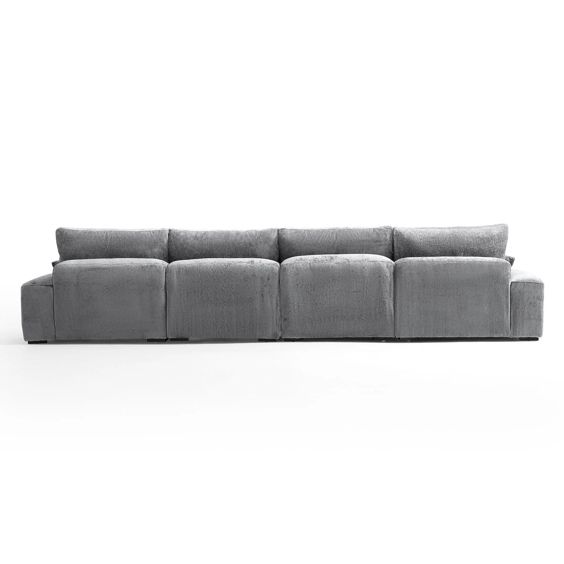 Sink into the expansive comfort of the Granite Sofa— a commanding U-shape sofa built for indulgent lounging. Wrapped in ultra-soft fabric with a matte stone-grey finish, its deep, sculpted seats and oversized chaises make it the perfect centerpiece for modern living. Whether you're hosting guests or unwinding solo, the Granite Cloud combines sheer size with irresistible softness to transform your space into a haven of ease and elegance.
