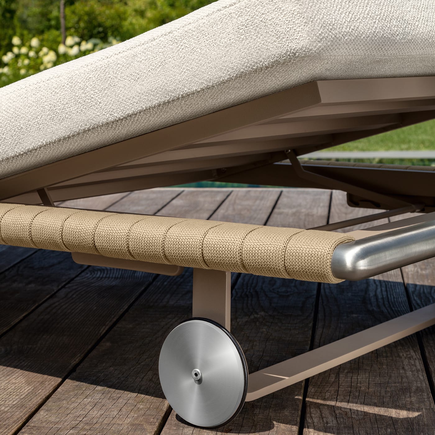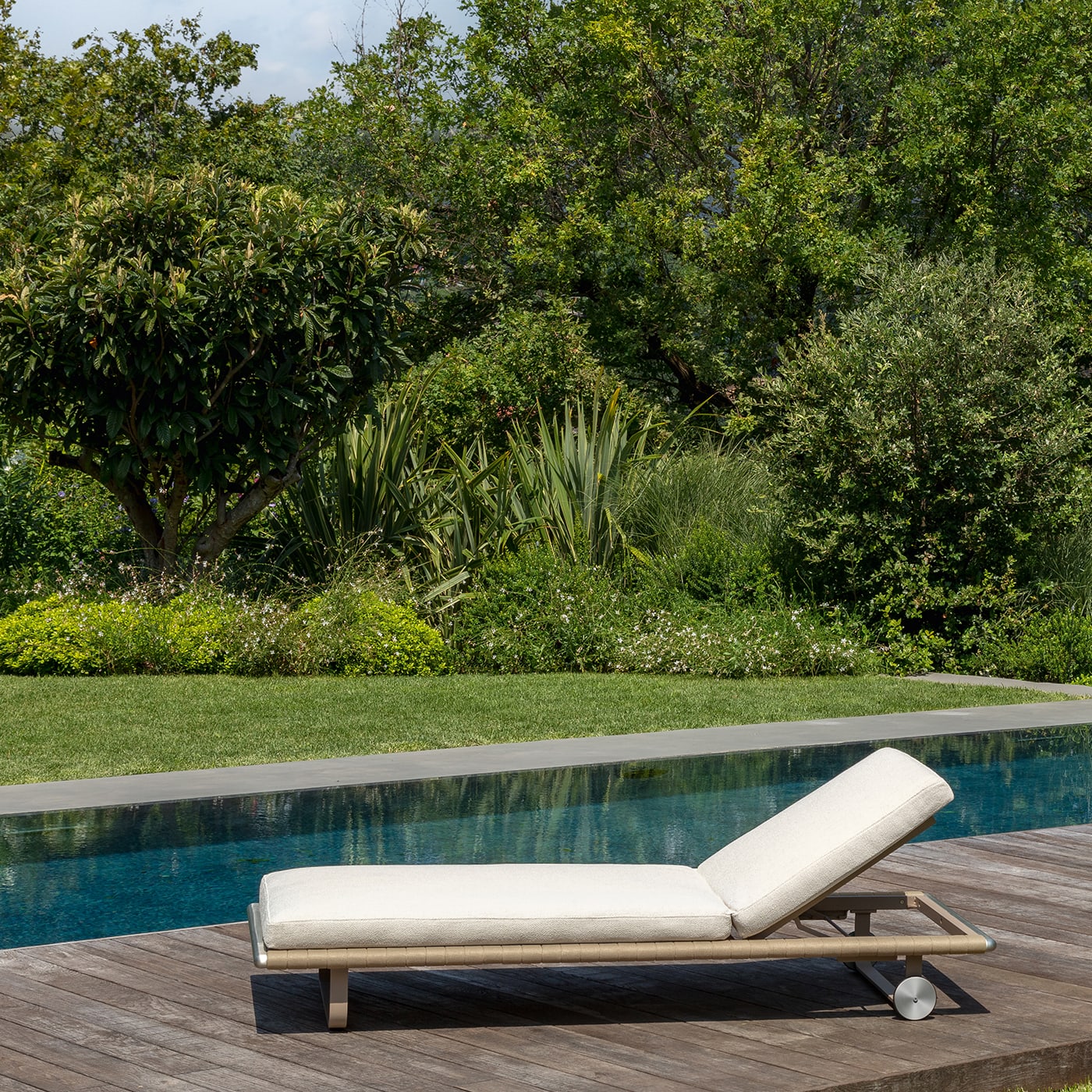 Lidó is a celebration of sculptural purity and Italian coastal allure. Defined by its elliptical silhouette and precision-crafted wood frame, this chaise lounge offers an elegant reinterpretation of outdoor living. The gently arched backrest—reinforced with marine-grade steel details—adds architectural rhythm, while plush, water-resistant cushions invite you into effortless repose.
