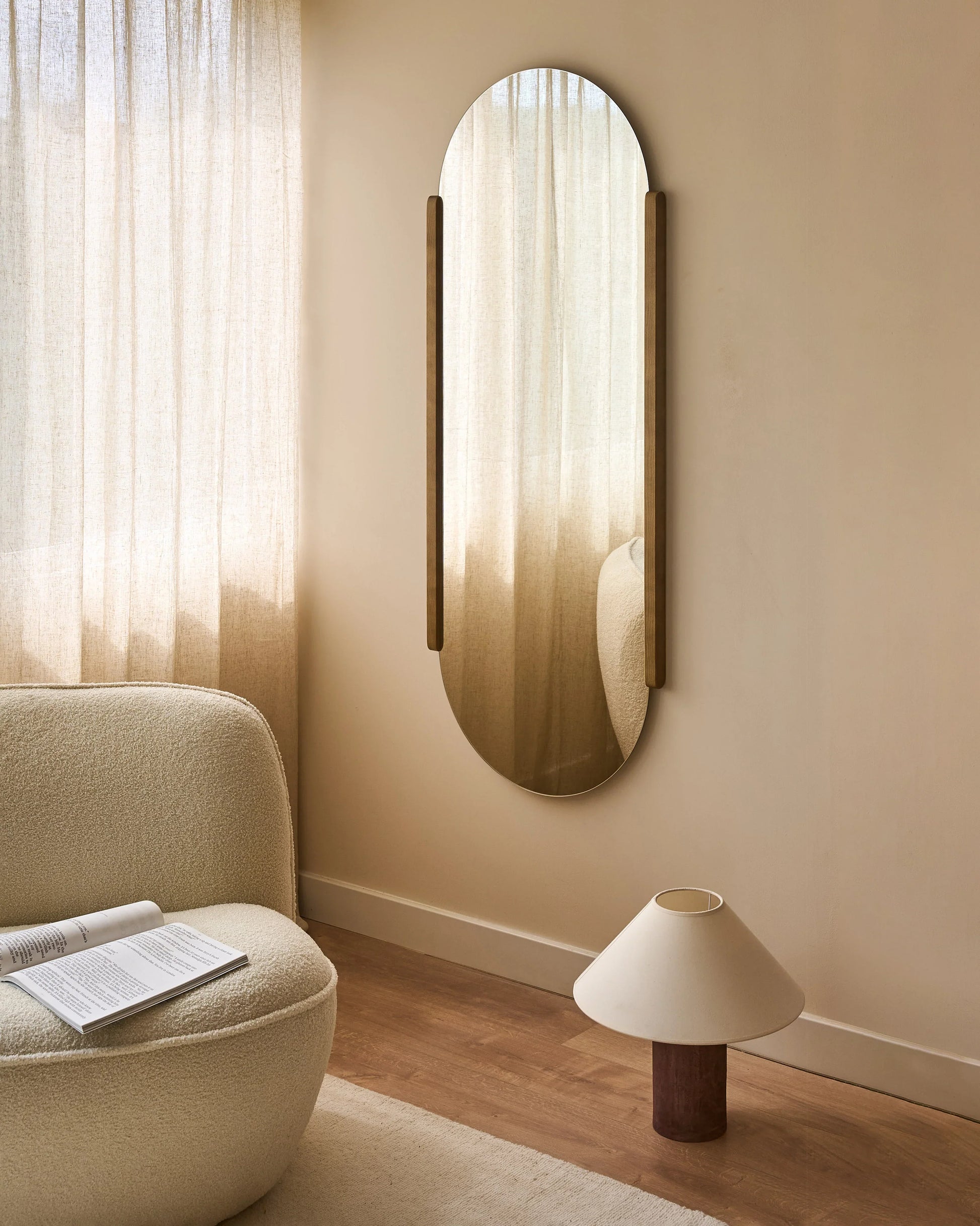 Lina is a round mirror defined by soft elegance and organic charm. Handcrafted with a natural wood frame and a gentle curve, it brings balance, warmth, and light to any wall. Whether styled solo or as part of a gallery arrangement, Lina offers a minimalist touch that’s quietly sophisticated.