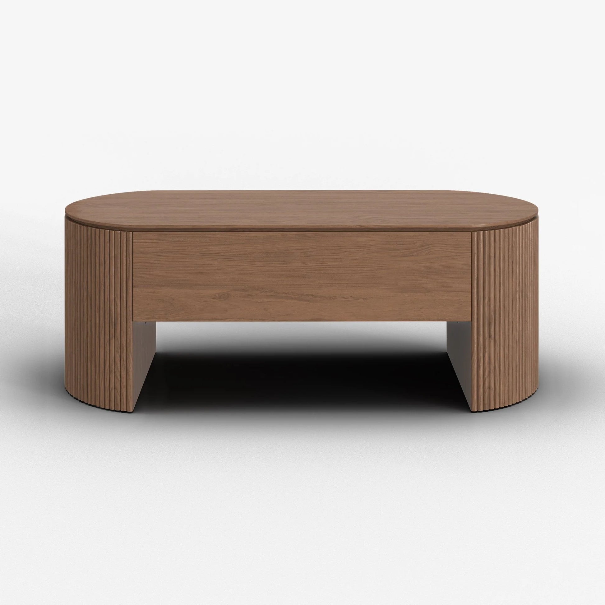 The Luno Coffee Table blends elegance with everyday function, featuring a smooth lift-top mechanism that reveals hidden storage beneath. Its soft oval shape and fluted curved legs create a refined silhouette, while the natural wood finish adds warmth and texture. Perfect for modern living rooms, this table transforms seamlessly from a sleek centerpiece into a practical surface for work, dining, or organizing essentials. Ideal for small spaces needing smart design without sacrificing style.