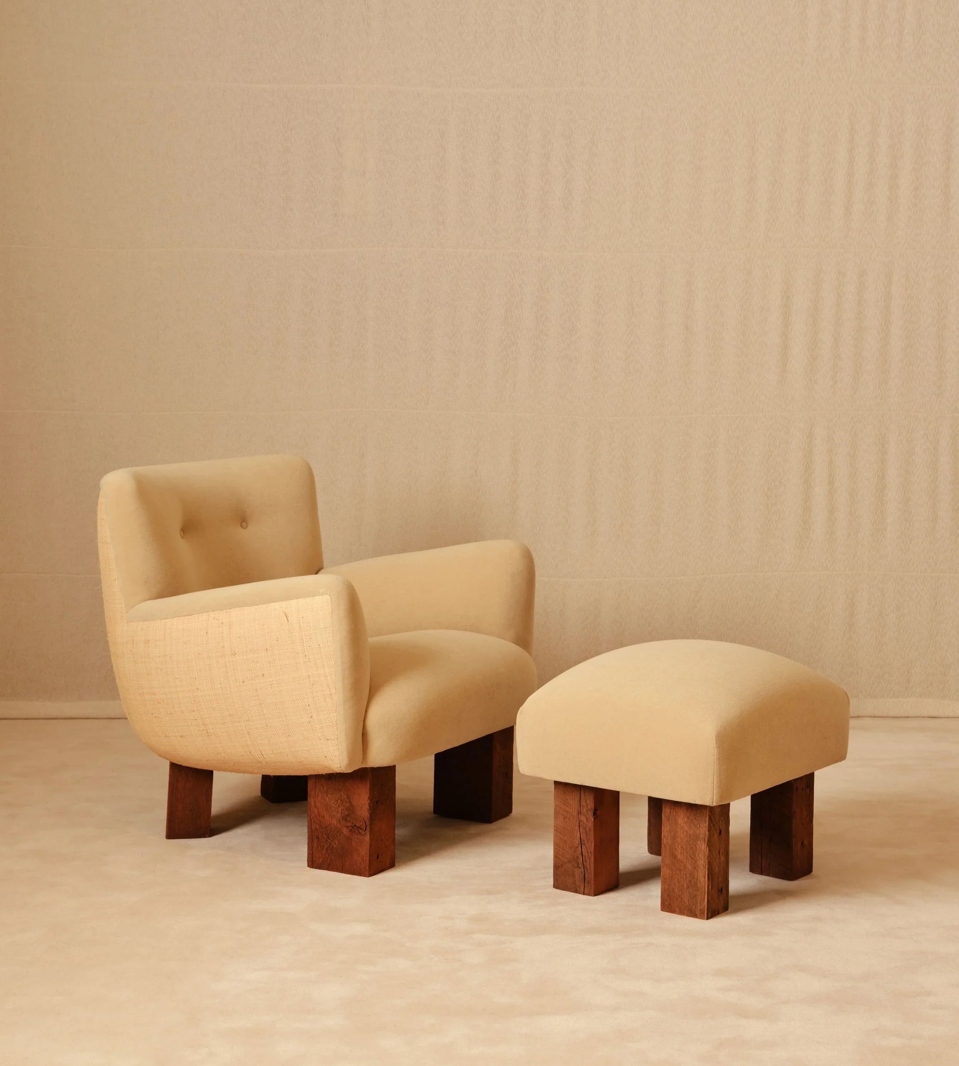 The Valdera Lounge is an exploration in volumetric softness and grounded poise. Constructed with reclaimed pine legs and wrapped in curated fabric, its plush curves and enveloping shape invite quiet repose. Generously scaled yet deeply human in dimension, Valdera is a signature piece — part lounge, part sculpture — that brings textured tranquillity to curated interiors.
